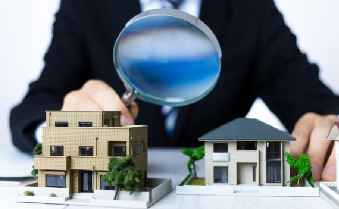 売却を希望する物件を訪問し、査定するための調査を行います。家の状態や築年数、間取りはもちろん、設備状態や周辺状況、地域ごとの特性、市場のニーズまでもが調査対象です。的確な査定額を算出するためにできる限り多くの情報を集め、お客様にご提示します。また、お見積もりに関する調査とあわせて今後の手続きを円滑に進められるよう、法律で制限されている事項や土地の境界線など、権利関係についての調査も徹底しております。
